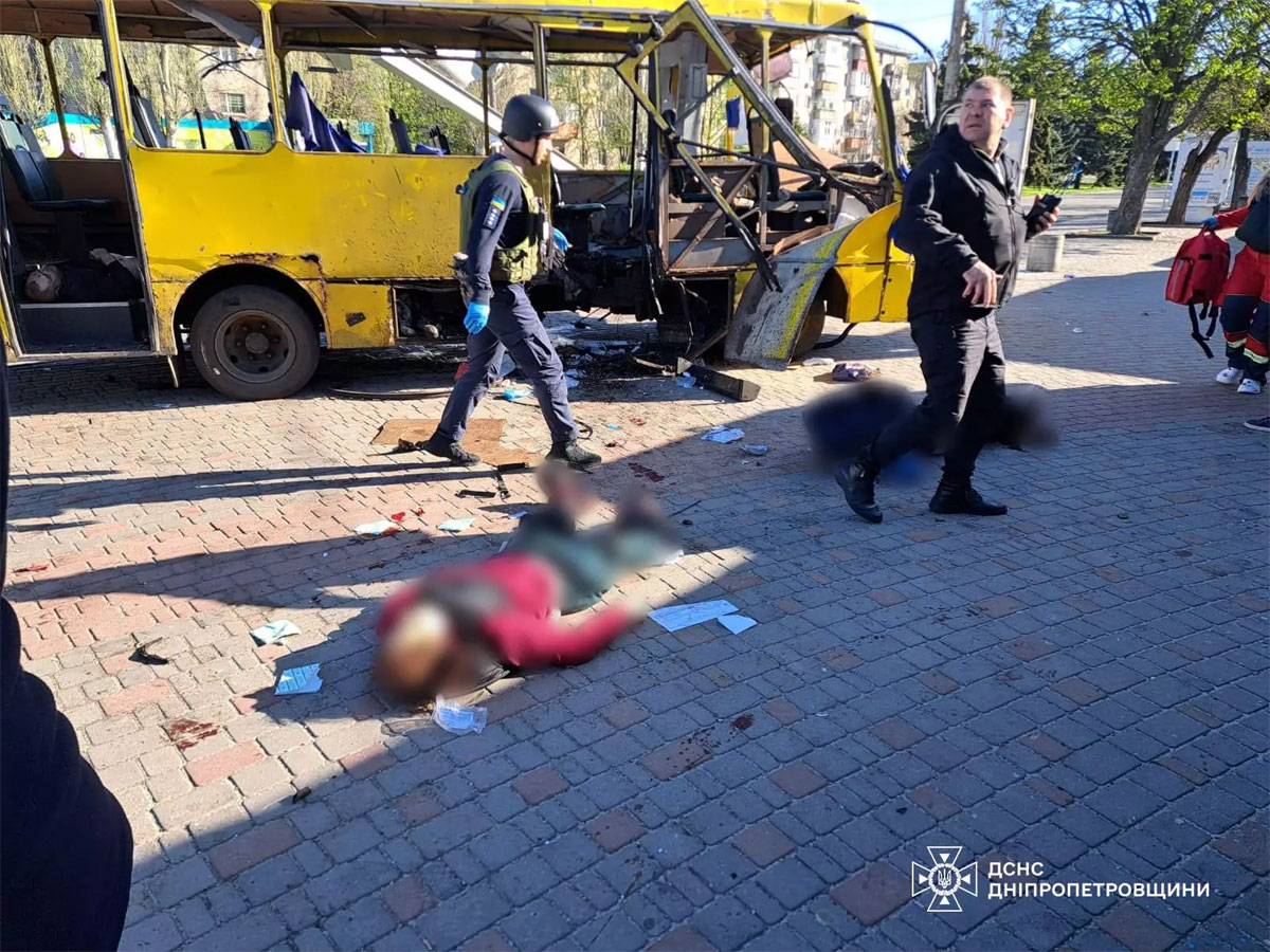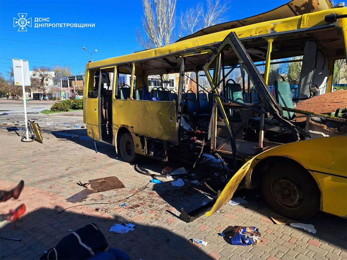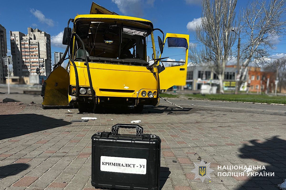 По данным спасателей, удар был точечным и пришёлся именно по жилому сектору. Прокуроры квалифицируют атаку как военное преступление. Утро 7 апреля (08:20–08:30): атака на автобус в НикополеОколо 08:30 утра произошёл один из самых резонансных ударов суток — дрон атаковал пассажирский автобус в центре Никополя. Транспорт двигался по маршруту и подъезжал к остановке, когда произошёл взрыв. Жертвы и пострадавшие: