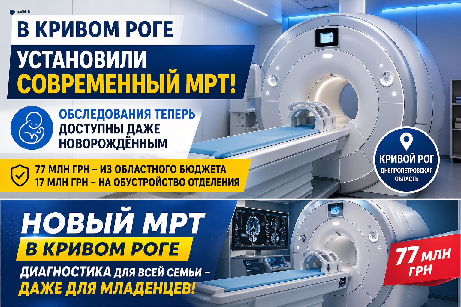 В Кривом Роге установили современный МРТ: обследования доступны даже для новорождённых (Видео)В одном из медицинских учреждений Кривого Рога завершили установку современного магнитно-резонансного томографа нового поколения. Уникальность оборудования заключается в том, что оно позволяет проводить диагностику даже у новорождённых — ранее в городе таких возможностей не было. Инвестиции в медицину: десятки миллионов на современную диагностикуПроект реализован при финансовой поддержке областного и городского бюджетов. На закупку оборудования из областного бюджета направили 77 миллионов гривен, ещё 17 миллионов гривен выделили на обустройство специализированного отделения и сопутствующую инфраструктуру. По словам представителей областной власти, подобные инвестиции — это не просто обновление техники, а стратегический шаг в развитии медицинской системы региона. Начальник Днепропетровской областной военной администрации отметил, что внедрение современных технологий существенно расширяет возможности диагностики и напрямую влияет на сохранение жизни пациентов. Особенно важно, что теперь обследование смогут проходить самые маленькие пациенты — младенцы. Технологии нового уровня: МРТ с искусственным интеллектомУстановленный томограф произведён в Нидерландах и оснащён встроенными алгоритмами искусственного интеллекта. Это позволяет: