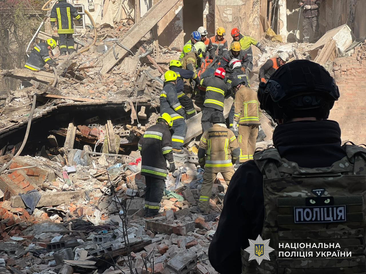 В нескольких районах города возникли пожары, которые ликвидируют подразделения спасателей. Как сообщили в региональных службах, масштаб разрушений указывает на целенаправленный комбинированный удар по гражданской инфраструктуре. Работа полиции и спасателей на месте трагедииСразу после атаки на местах поражений были развернуты мобильные штабы полиции. Правоохранители: