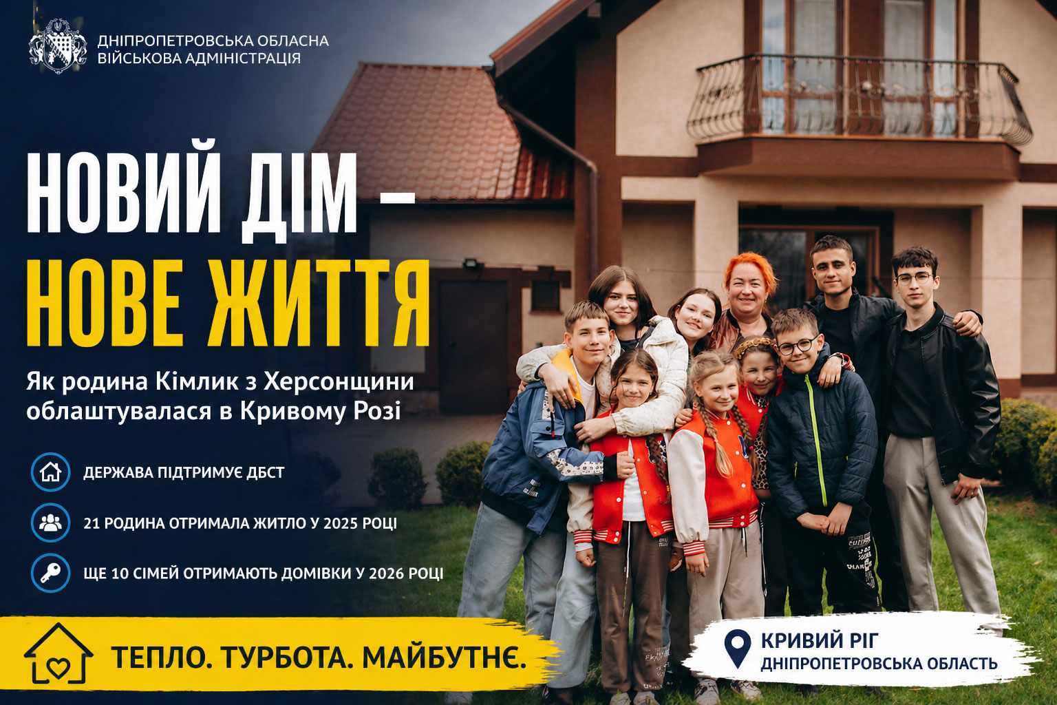 На тот момент семья воспитывала девять детей, из которых восемь — приемные. В условиях постоянных переездов обеспечить стабильность для детей было непросто. Государственная поддержка: новые дома для ДБСТВ 2025 году ситуация семьи изменилась благодаря государственной программе поддержки детских домов семейного типа (ДБСТ). Семье Кимлик предоставили просторный двухэтажный дом в Кривом Роге. Начальник Олександр Ганжа, представляющий Днепропетровскую областную военную администрацию, отметил: