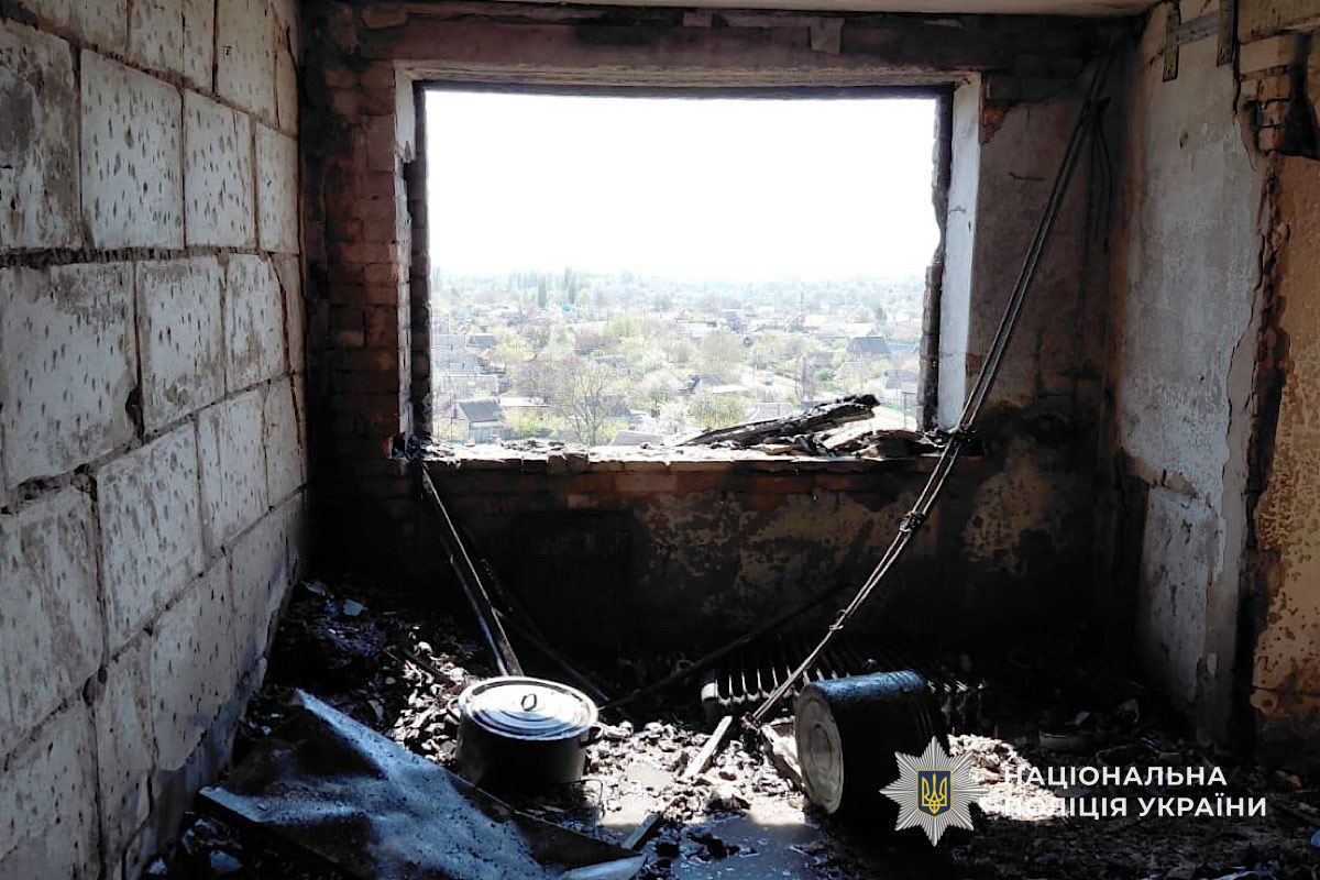 Этот эпизод стал одним из первых за сутки, зафиксированных правоохранителями. 26 апреля, день: удар по многоэтажке в МарганцеЧерез несколько часов после атаки на автомобиль беспилотник ударил по девятиэтажному дому в Марганце. Последствия: